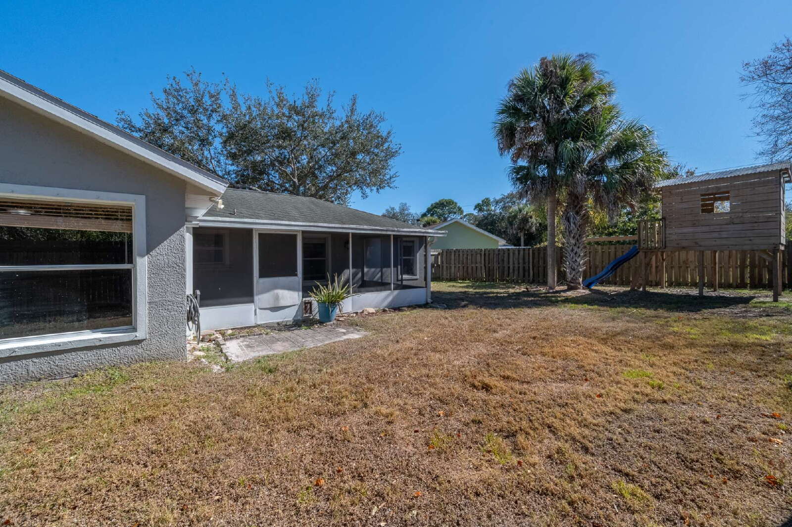 Well-maintained 3 bedroom, 2 bathroom single-family home with a 2-car garage and a spacious split-bedroom floor plan. Home features separate living, dining, and family rooms, plus an eat-in kitchen with breakfast counter, pantry, and ample cabinet space. Primary suite includes a walk-in closet. Tile and LVP flooring and ceiling fans throughout. Interior laundry room for convenience. Enjoy a large screened-in back porch overlooking a fenced yard with playground. Backyard backs to a nature preserve for added privacy. Basic lawn care included in the rent. All Osto Property Management residents are enrolled in the Resident Benefits Package at a cost of $55 a month, in addition to the monthly rent. This package includes HVAC air filter delivery, credit-building features to improve your score with on-time rent payments, $1M Identity Protection, a move-in concierge service to simplify utility and home service setup, in-home pest control, access to our top-tier resident rewards program, and more! Full details provided upon application. Equal Opportunity Housing.